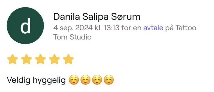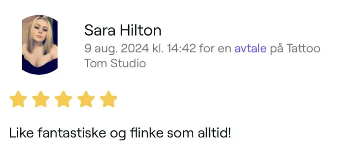 Tattoo Tom Studio er et profesjonelt tatoveringsstudio som tilbyr en rekke tjenester innenfor tatovering, piercing, permanent makeup og saline removal. Vårt erfarne og kreative team av tatoveringsartister tar imot kunder med åpne armer og sørger for at deres ønsker og behov blir ivaretatt. Vi jobber tett med våre kunder for å skape unike og personlige tatoveringer som vil vare livet ut.